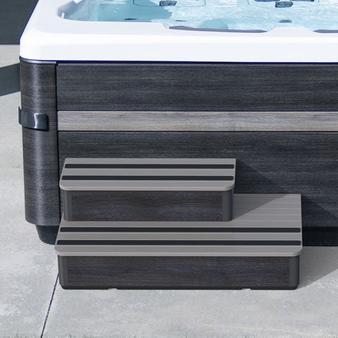 The A Series Step features a configurable upper step so it can be in the center, left, or right, adapting to your spa model and preferred location. Enjoy convenient storage inside the top step to easily keep your spa products close. The step features non-slip treads, matching colors to each A Series cabinet, and is also the suggest step option for STIL spas.